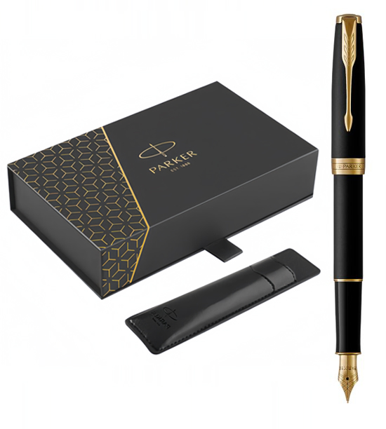 Набор Parker Sonnet Black GT (перьевая ручка + чехол) от официального дилера Parker в Кемерове. Вы можете дополнительно заказать гравировку, которая подчеркнет Вашу оригинальность и придаст памятность статусному подарку. Все ручки Паркер поставляются в фирменном футляре.