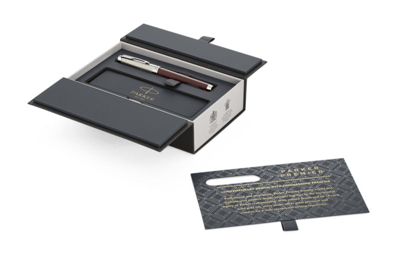 Ручка роллер Parker Premier Crimson Red RT от официального дилера Parker в Кемерове. Вы можете дополнительно заказать гравировку, которая подчеркнет Вашу оригинальность и придаст памятность статусному подарку. Все ручки Паркер поставляются в фирменном футляре.