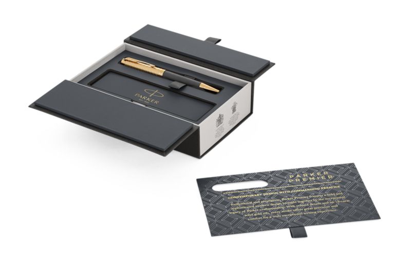 Шариковая ручка Parker Premier Storm Grey GT от официального дилера Parker в Кемерове. Вы можете дополнительно заказать гравировку, которая подчеркнет Вашу оригинальность и придаст памятность статусному подарку. Все ручки Паркер поставляются в фирменном футляре.
